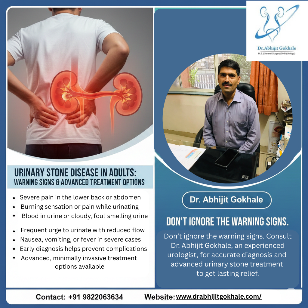 #DrAbhijitGokhale #UrinaryStoneTreatment #UrologistInPune #KidneyStoneCare #MinimallyInvasiveTreatment #StoneRemoval #UrinaryHealth #AdultHealthCare #PuneDoctors #ExpertUrologistAdults experiencing severe back pain, abdominal discomfort, burning urination, or blood in urine may have urinary stone disease. Dr. Abhijit Gokhale, one of the leading urologists in Pune, provides expert urinary stone treatment using advanced and minimally invasive techniques. Early consultation ensures safe stone removal, effective relief, and long-term urinary health. Book an appointment today for trusted care. https://www.drabhijitgokhale.com/urinary-stone-treatment.php #DrAbhijitGokhale #UrinaryStoneTreatment #UrologistInPune #KidneyStoneCare #MinimallyInvasiveTreatment #StoneRemoval #UrinaryHealth #AdultHealthCare #PuneDoctors #ExpertUrologist0 0 Reacties 0 Aandelen