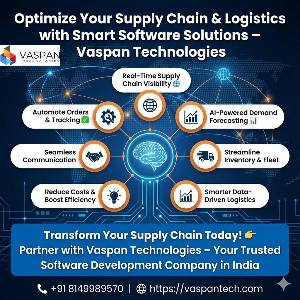 Streamline inventory, fleet, and warehouse management, gain real-time visibility, and leverage predictive analytics to improve efficiency and reduce costs. Perfect for businesses seeking accuracy, speed, and scalability. Partner with Vaspan Technologies, a leading software development company in India, and transform your supply chain today!