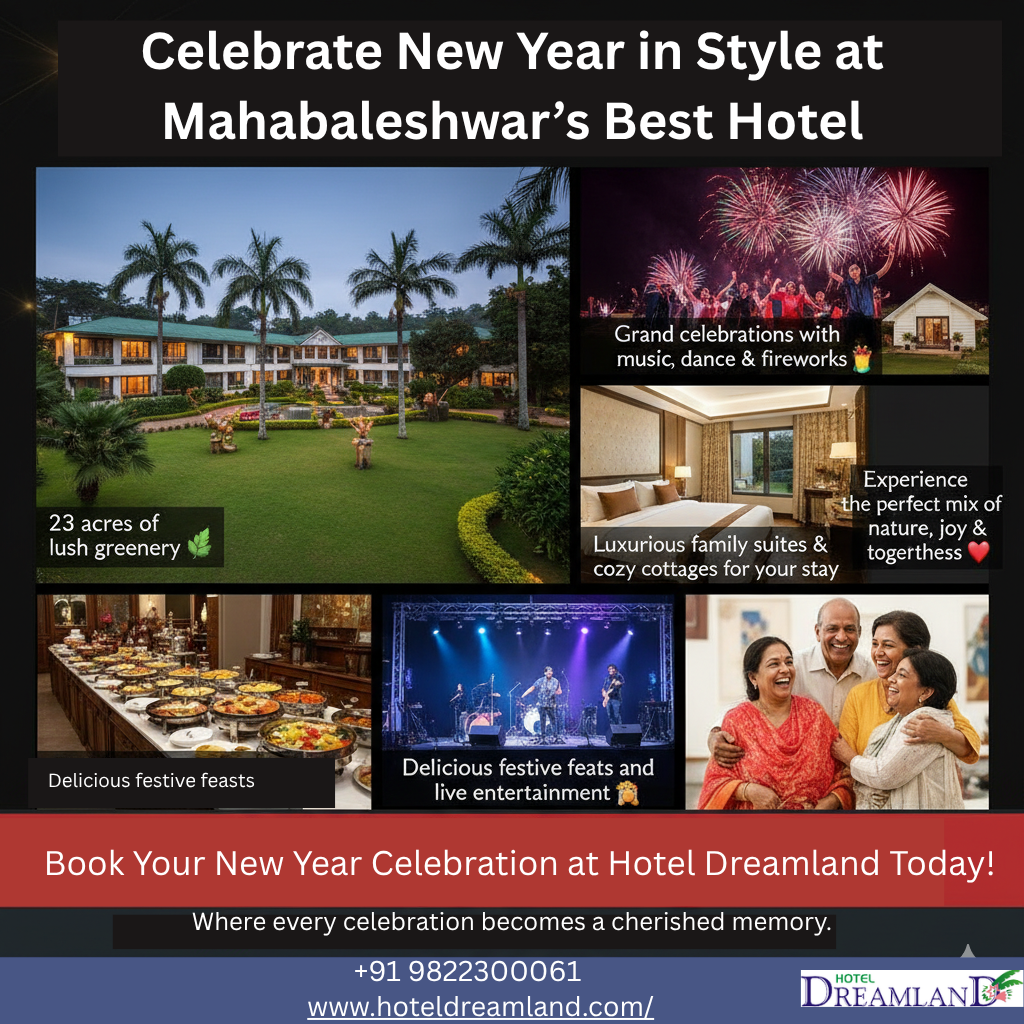 ✨ Book your stay today at Hotel Dreamland – Mahabaleshwar’s ultimate New Year destination!
