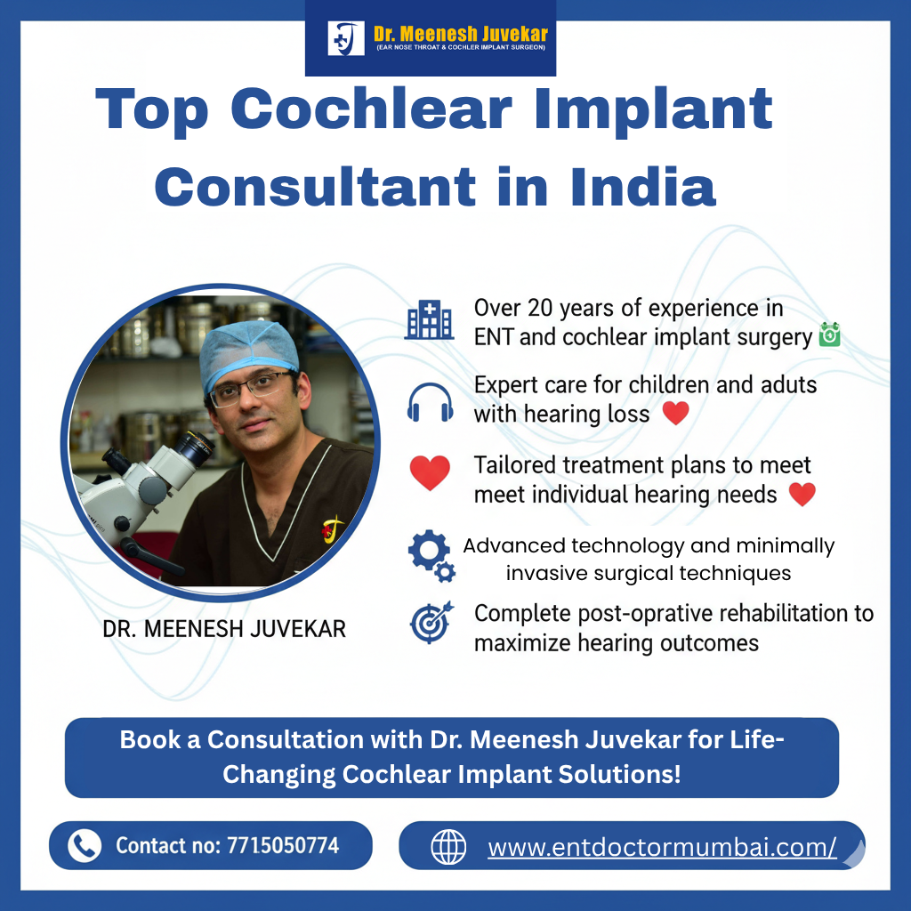 #CochlearImplantConsultantInIndia #DrMeeneshJuvekar #ENTSpecialistMumbai #CochlearImplantIndia #HearingRestoration #AuditoryRehabilitation #BestCochlearImplantSurgeon